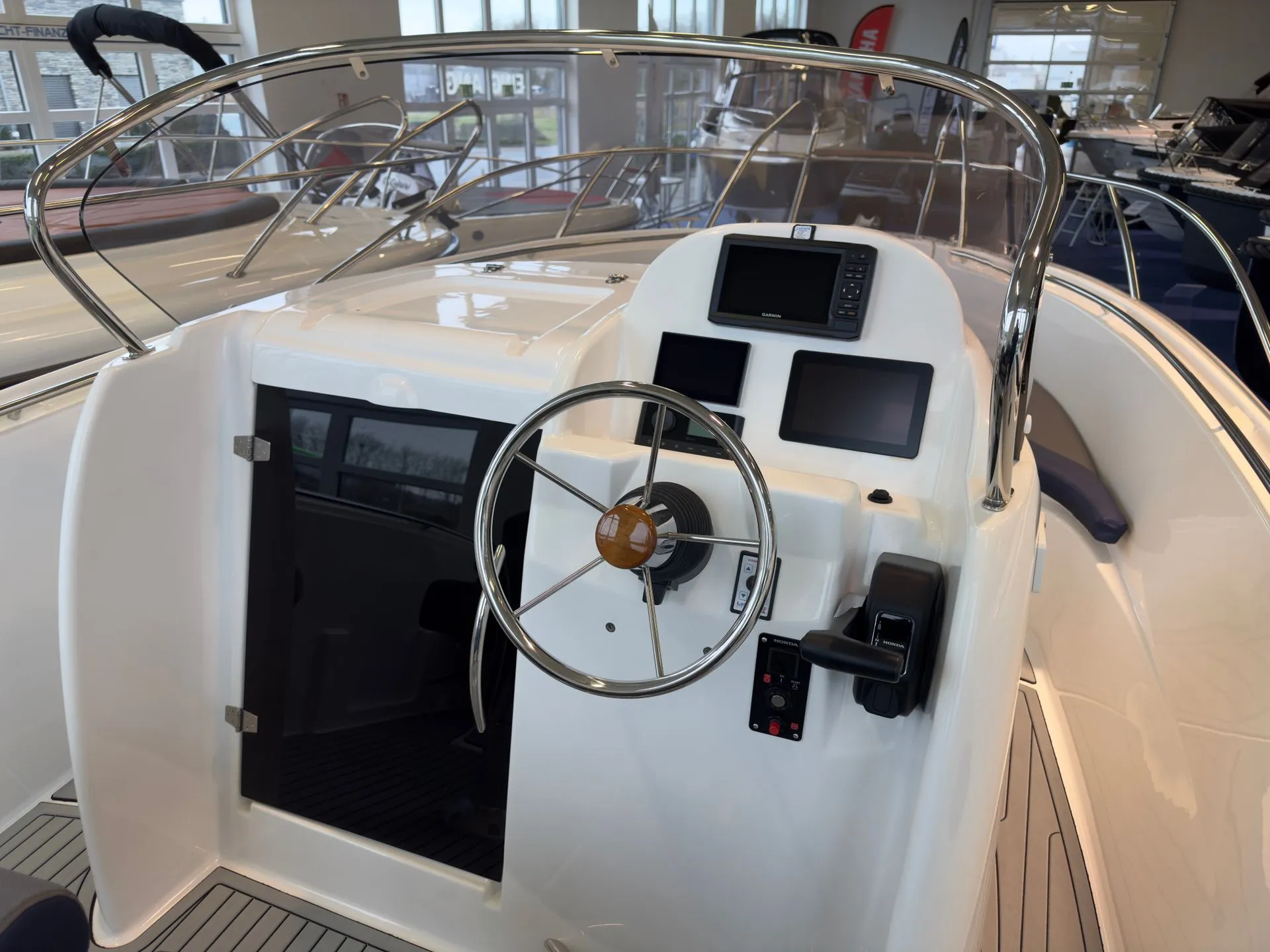 Barca agrement – M730 Open este o ambarcatiune mare cu punte deschisă. Acces convenabil la pupa și la prova, o consolă centrala confortabilă cu uși vitrate, care se încuie. Scaunul pilotului poate gazdui doi adulți. Barca este recomandată pentru recreere în familie, turism si pescuit.