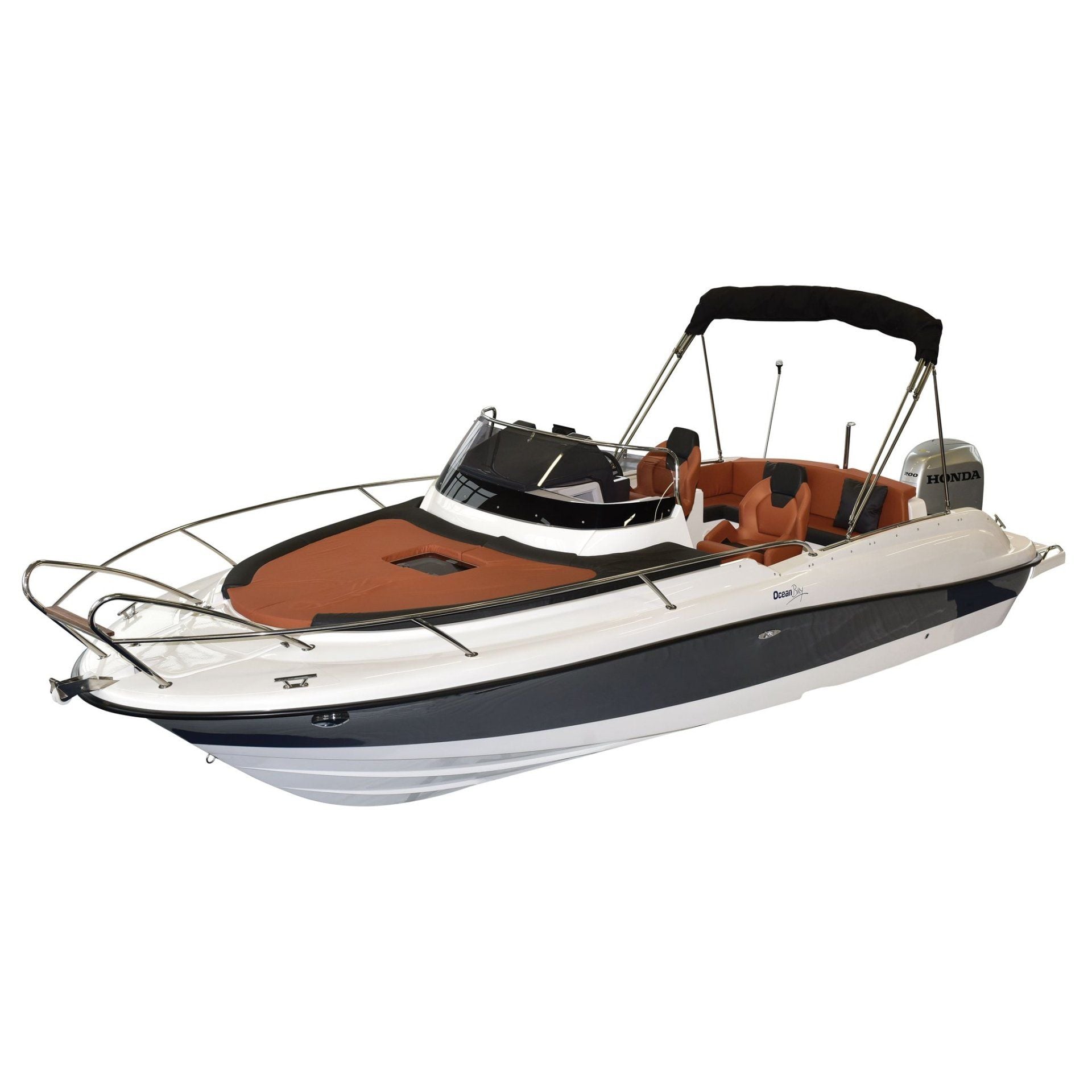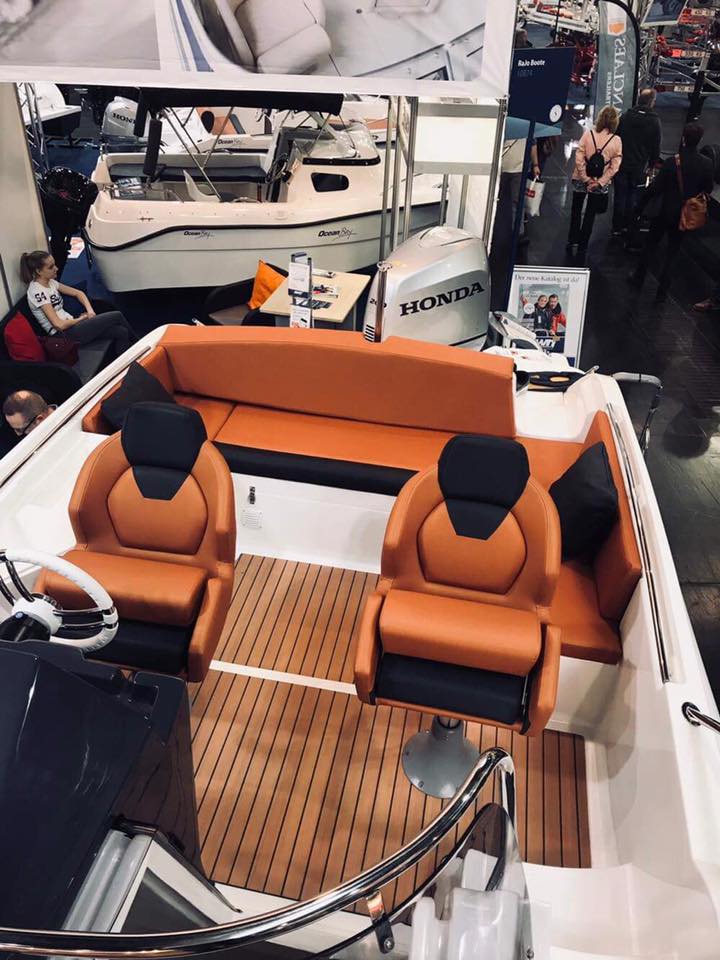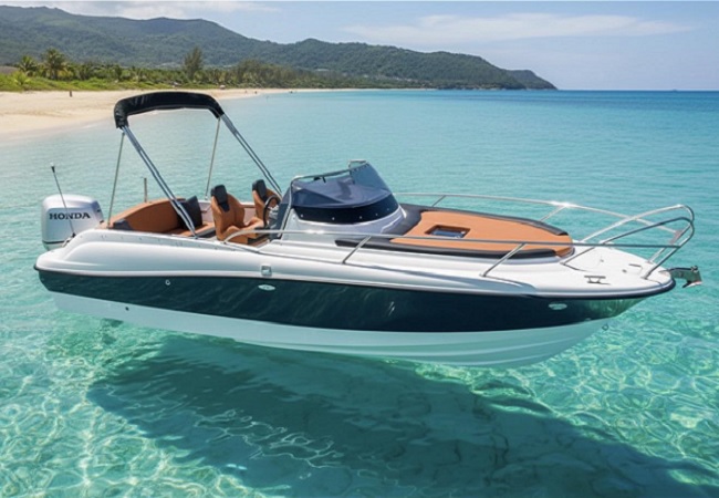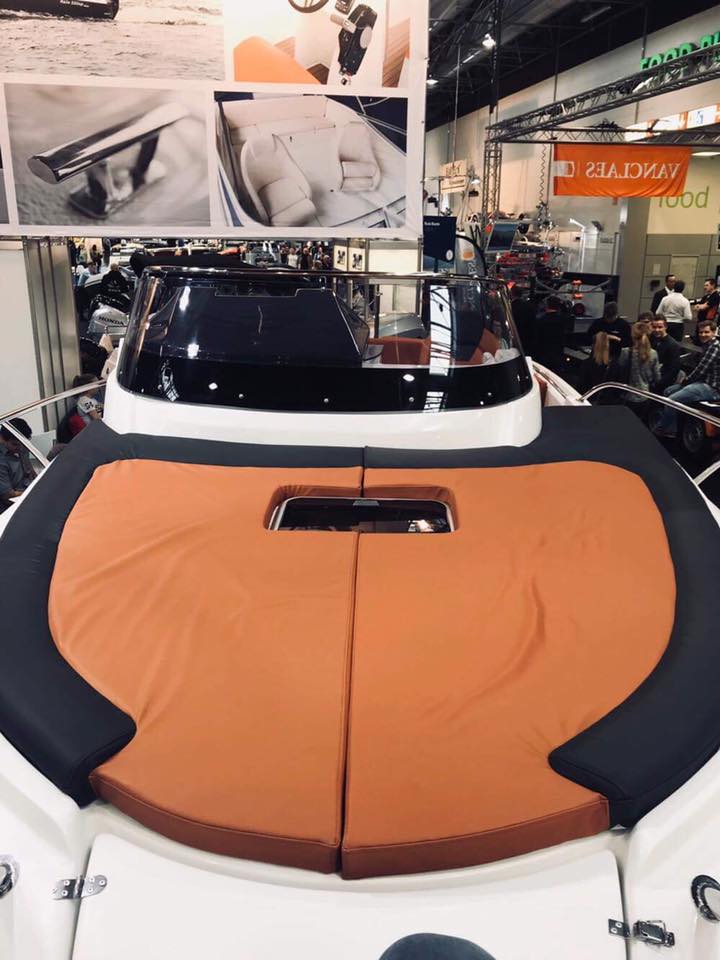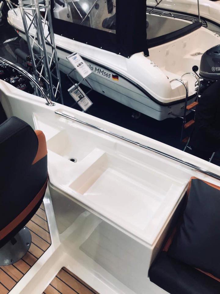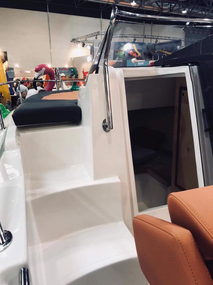 Barca cabinata – M750 SUNdeck este o ambarcatiune cu un spatiu mare pentru plaja. Dedesubt se află o cabină pentru dormit și o incapere separată pentru toaletă. Barca este recomandată pentru recreere în familie, turism, pescuit si sporturi nautice.
