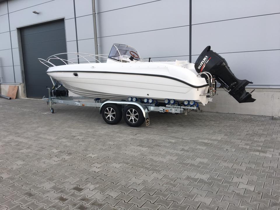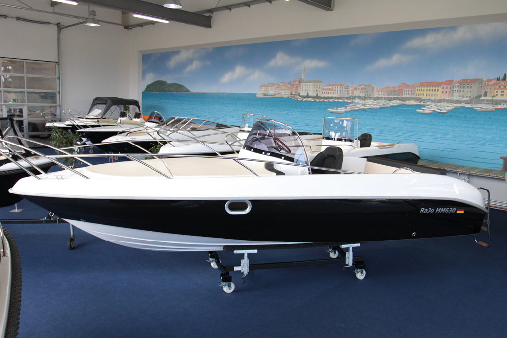 Barca cu cabina – M630 Cabine este o barca mare, stabila, loc pentru șase persoane. Dispune de o zona pentru plaja deasupra cabinei. Cabină pentru trei persoane. Barca este recomandata pentru relaxare in familie, turism si pescuit.