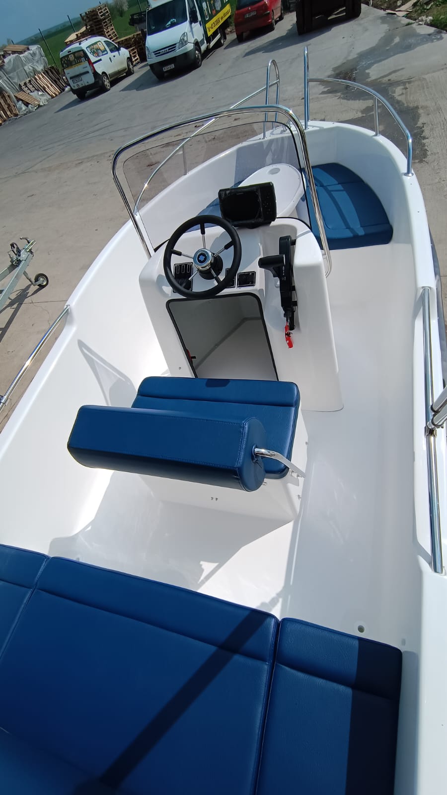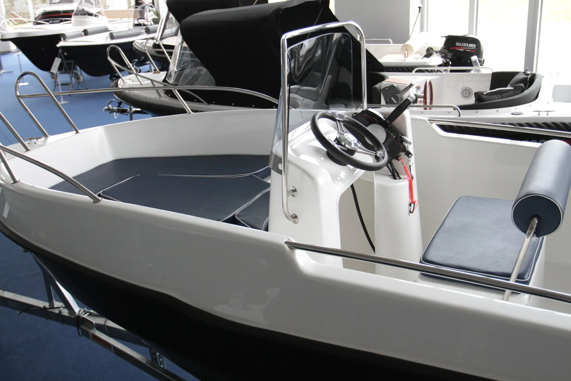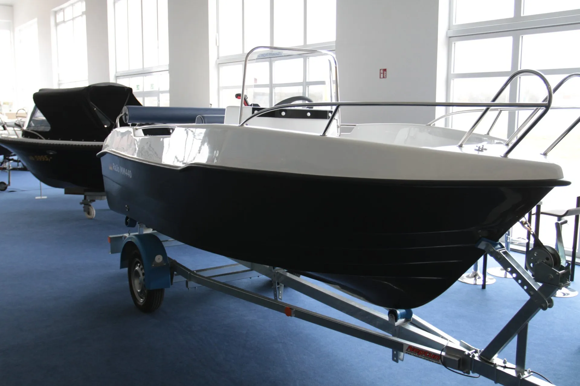 Barca cu motor – M440 este barca cu puntea deschisa si acces facil la pupa si la prova. Podea adâncă și borduri înalte. Consola de directie situata central. Barca cu motor – M440 este recomandata pentru relaxare in familie, sporturi nautice, turism si pescuit.