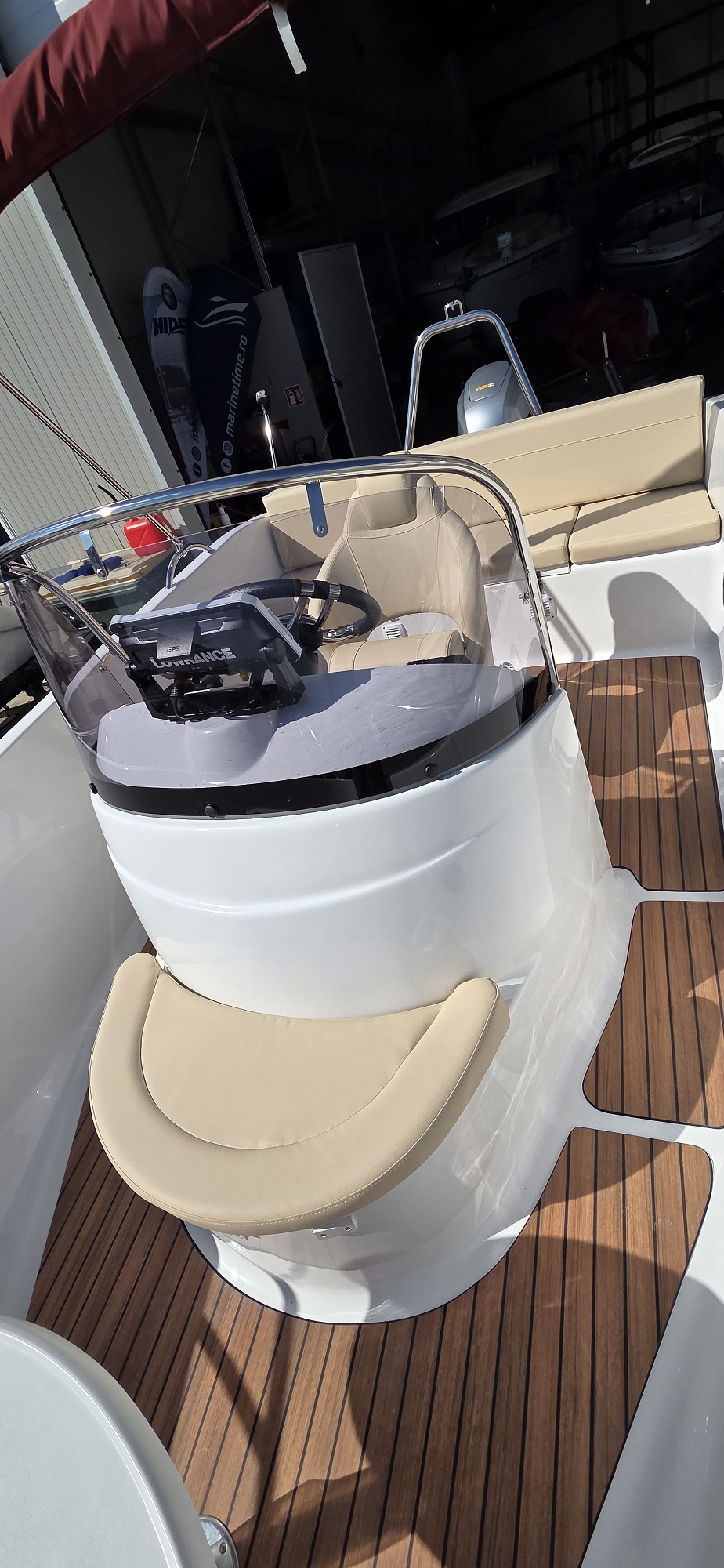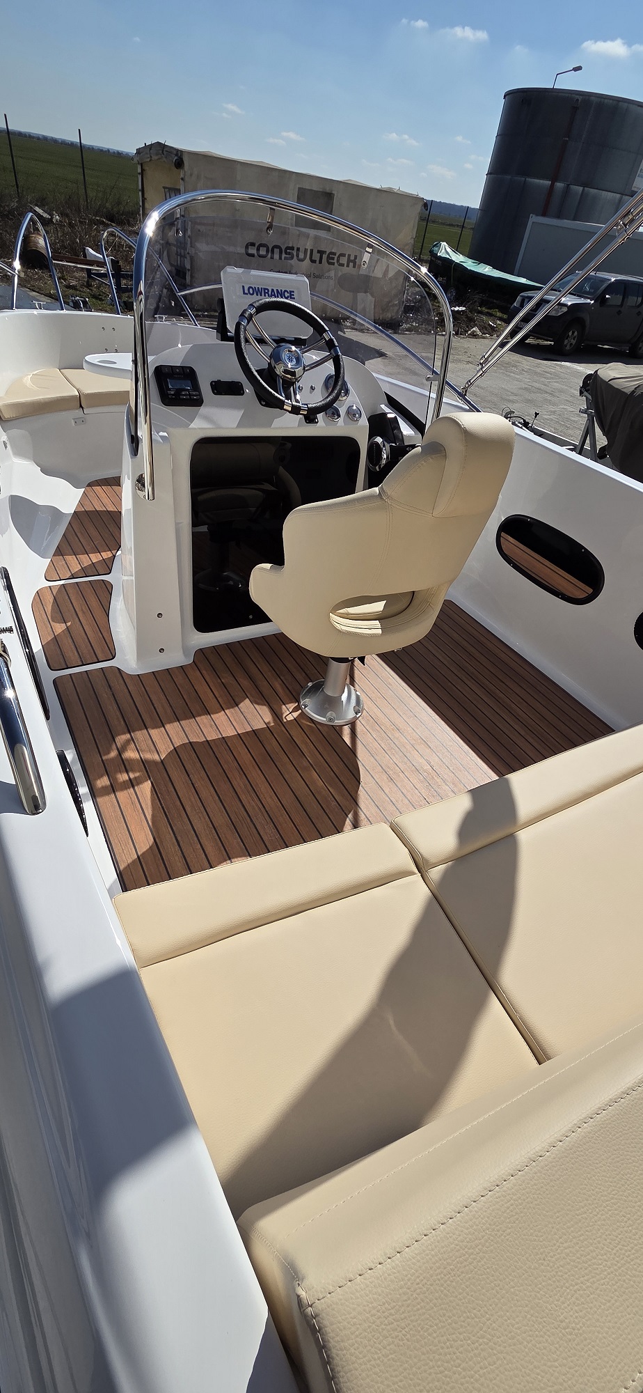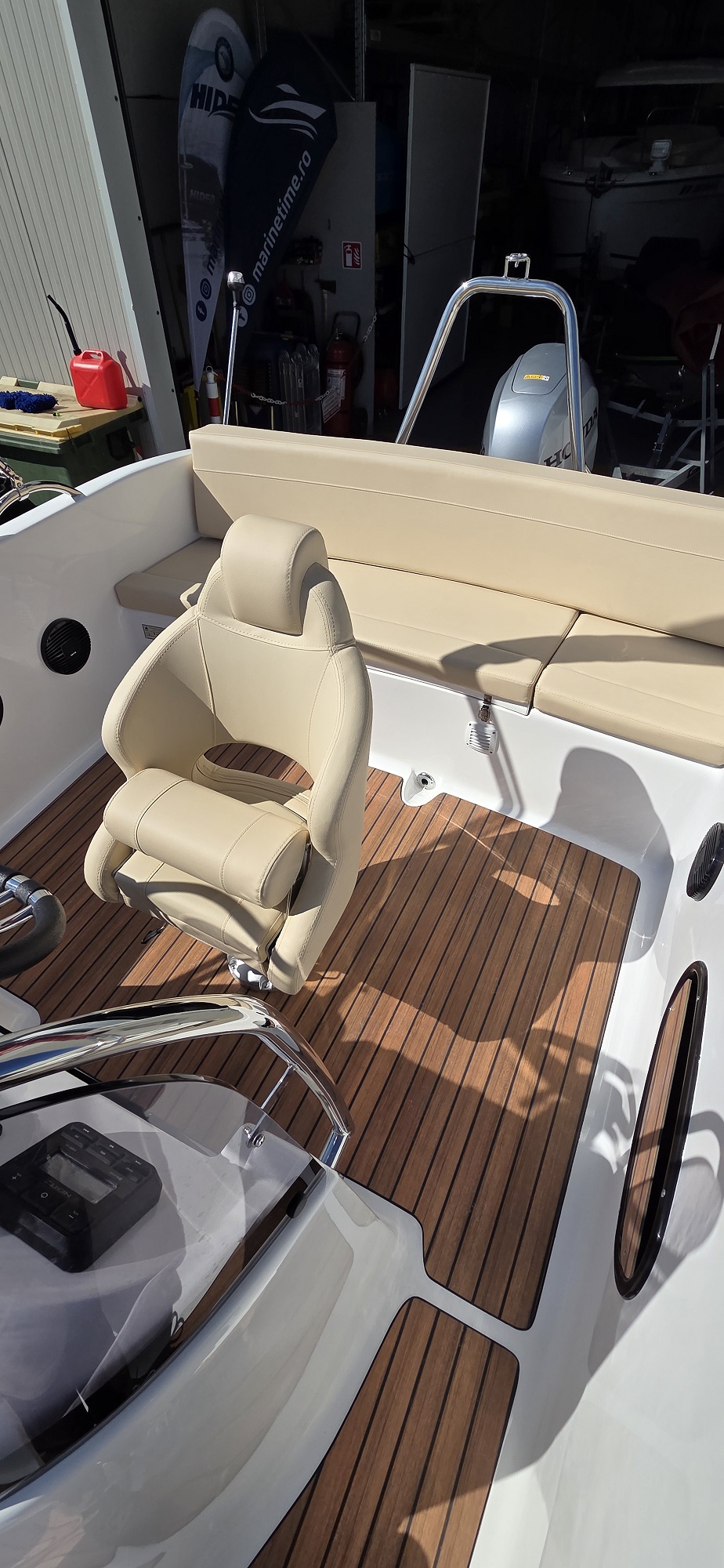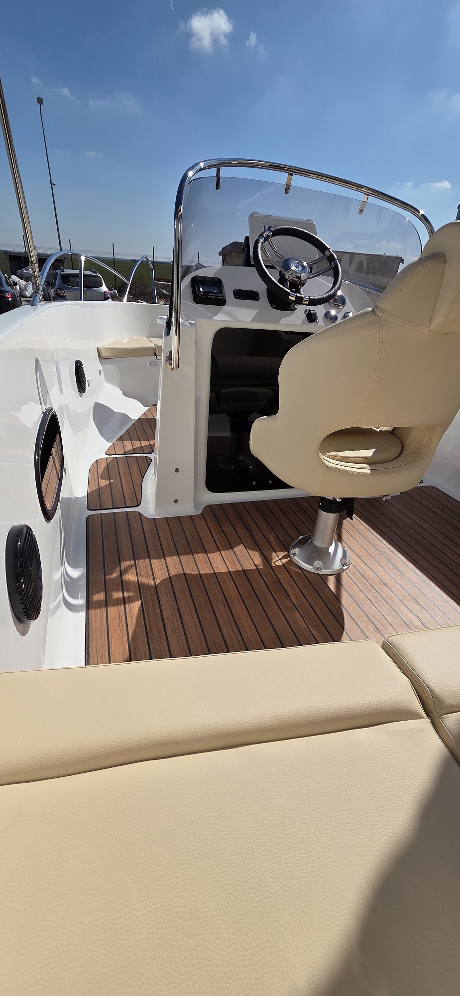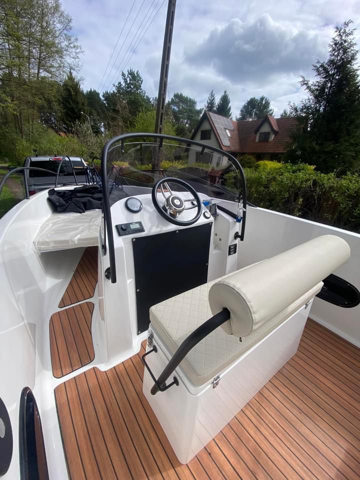 Barca cu motor – M560 Open este o barca cu puntea deschisa si accesul confortabil la pupa si la prova. Cockpit adânc și spațios, borduri înalte. Consola de directie situata central si loc de plaja la prova. Barca este recomandata pentru relaxare in familie, sporturi nautice, turism si pescuit.