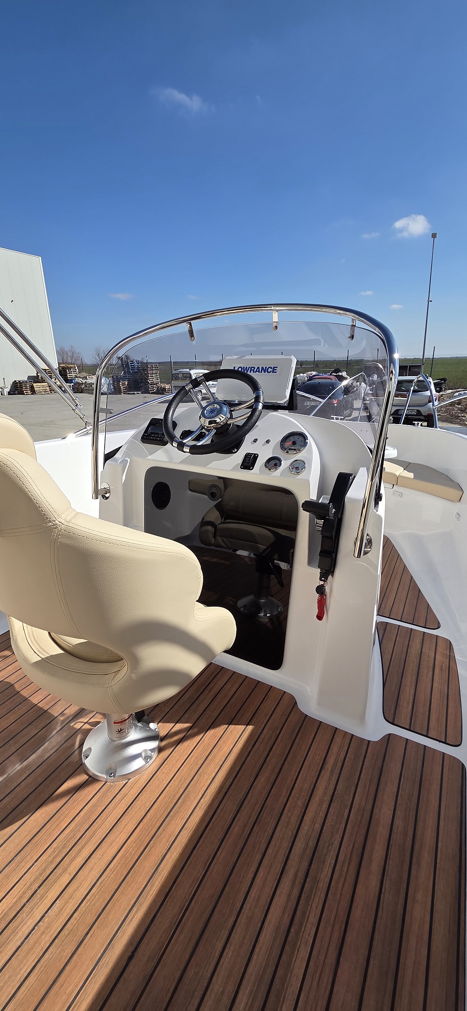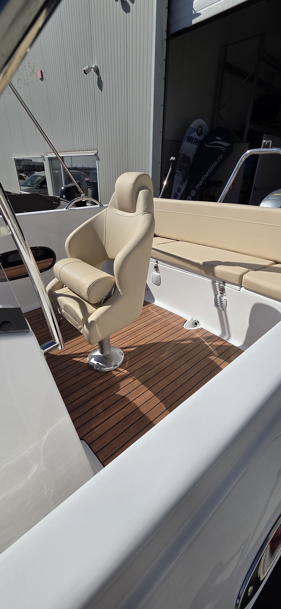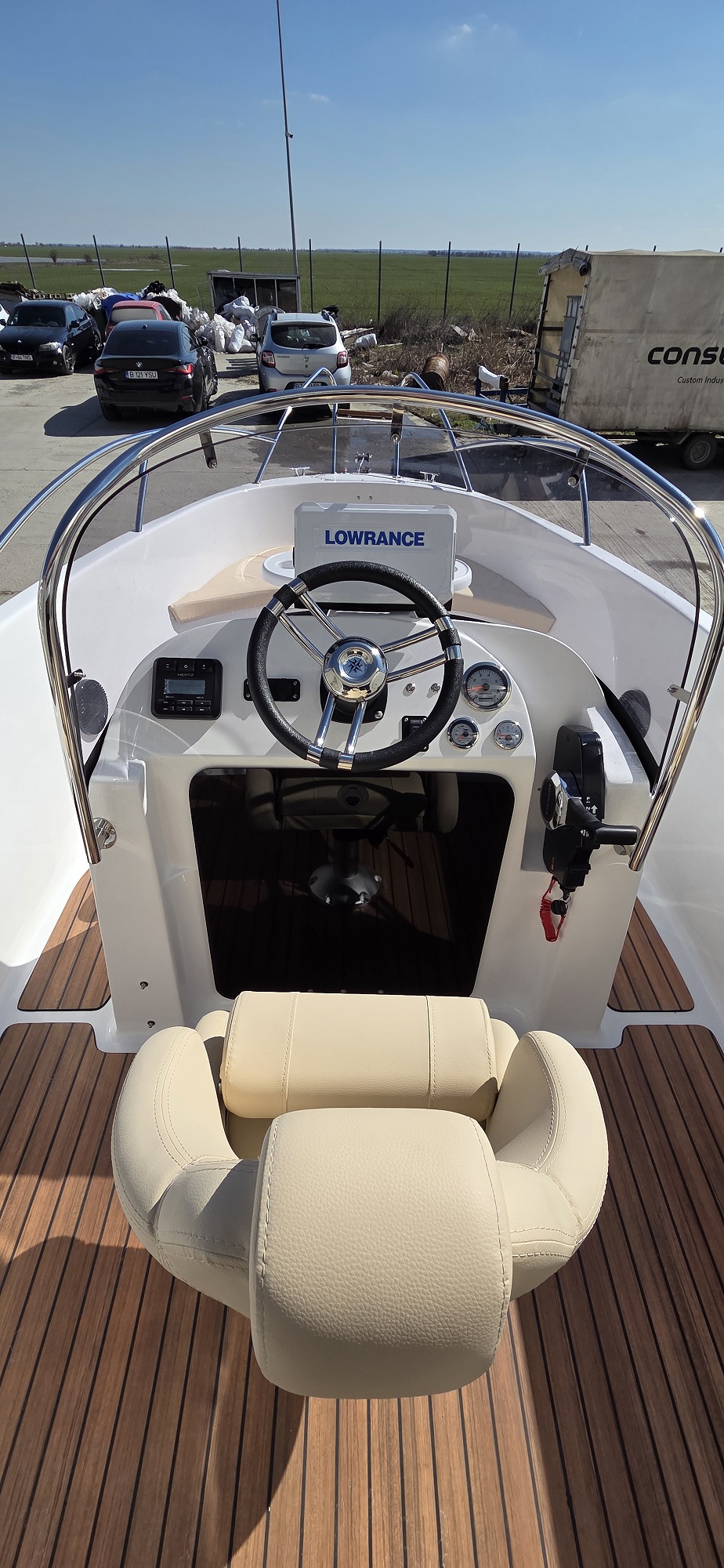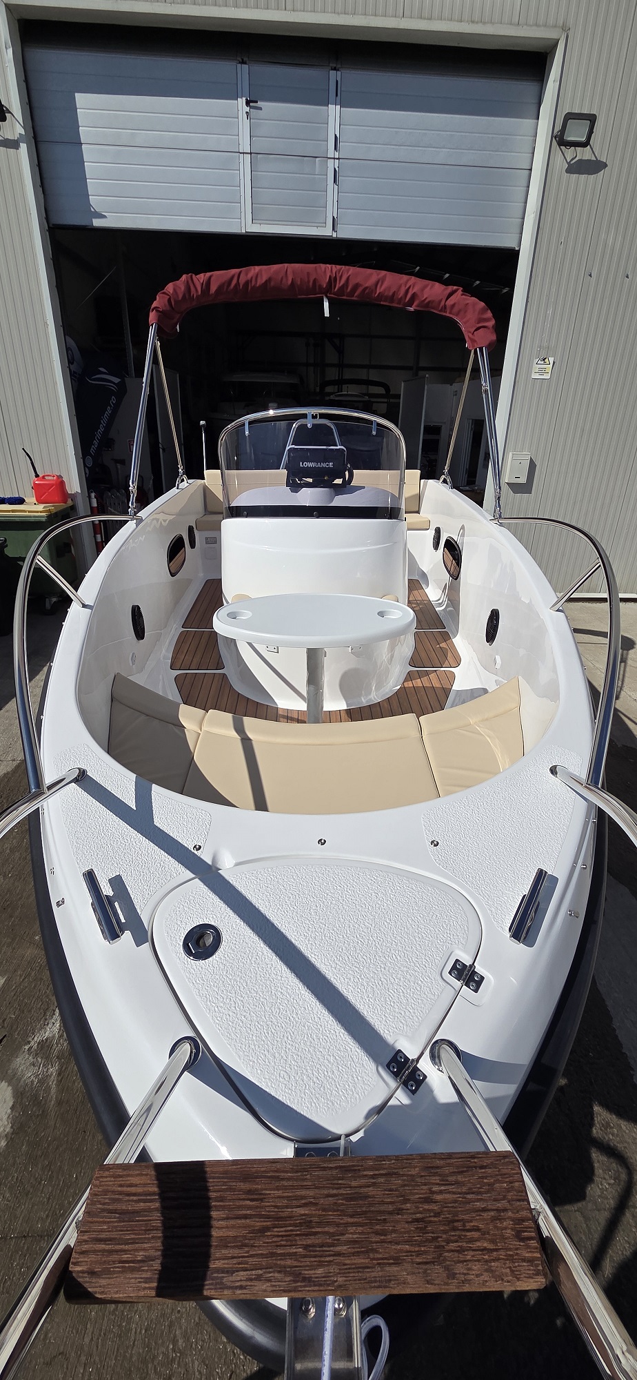 Barca cu motor – M560 Open este o barca cu puntea deschisa si accesul confortabil la pupa si la prova. Cockpit adânc și spațios, borduri înalte. Consola de directie situata central si loc de plaja la prova. Barca este recomandata pentru relaxare in familie, sporturi nautice, turism si pescuit.