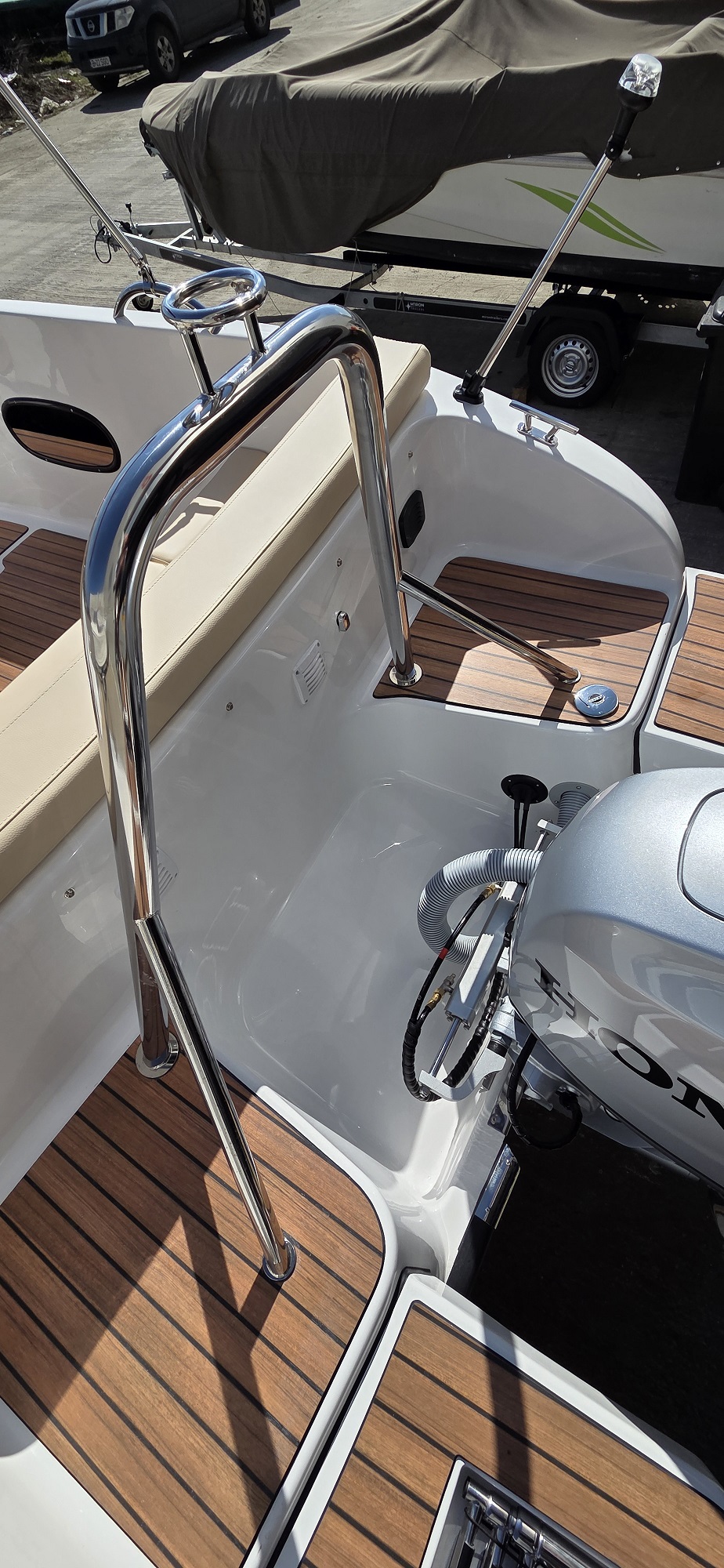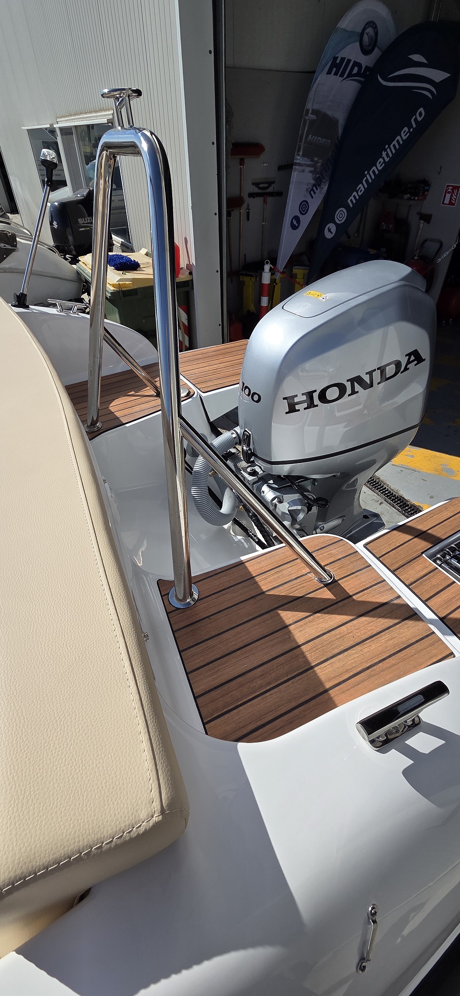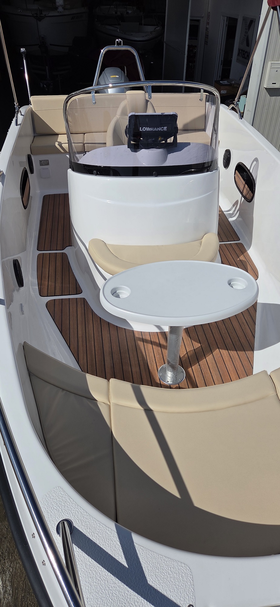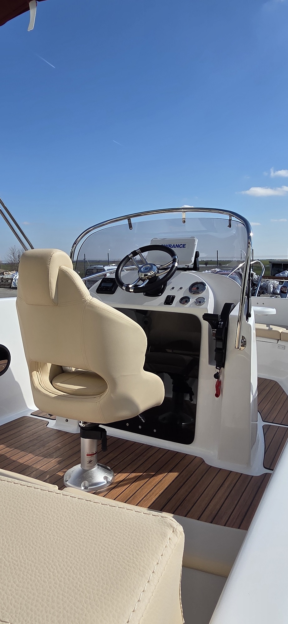 Barca cu motor – M560 Open este o barca cu puntea deschisa si accesul confortabil la pupa si la prova. Cockpit adânc și spațios, borduri înalte. Consola de directie situata central si loc de plaja la prova. Barca este recomandata pentru relaxare in familie, sporturi nautice, turism si pescuit.