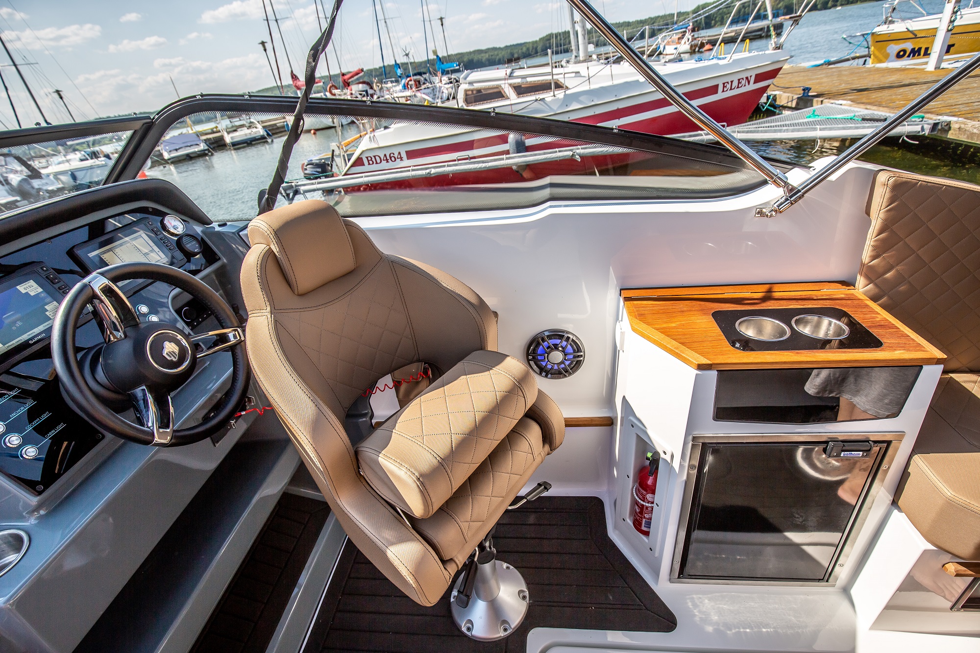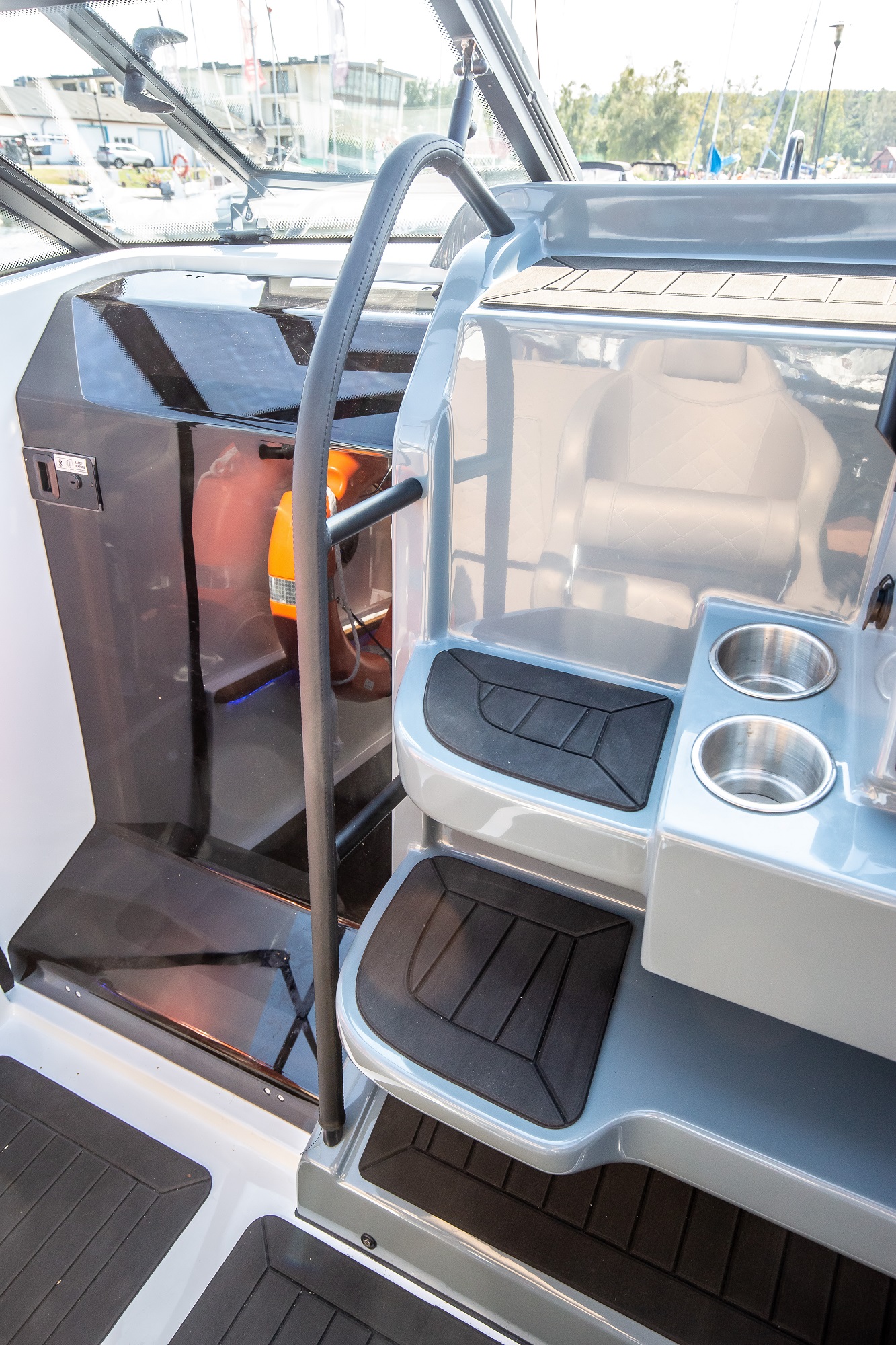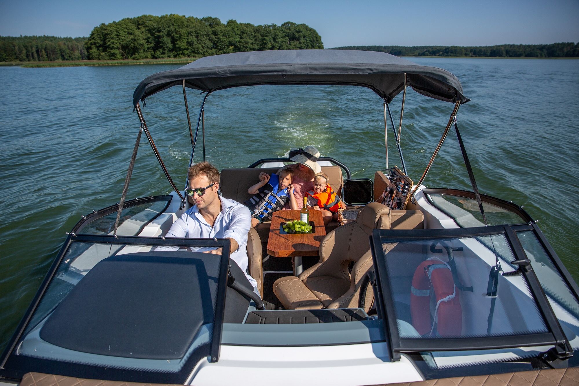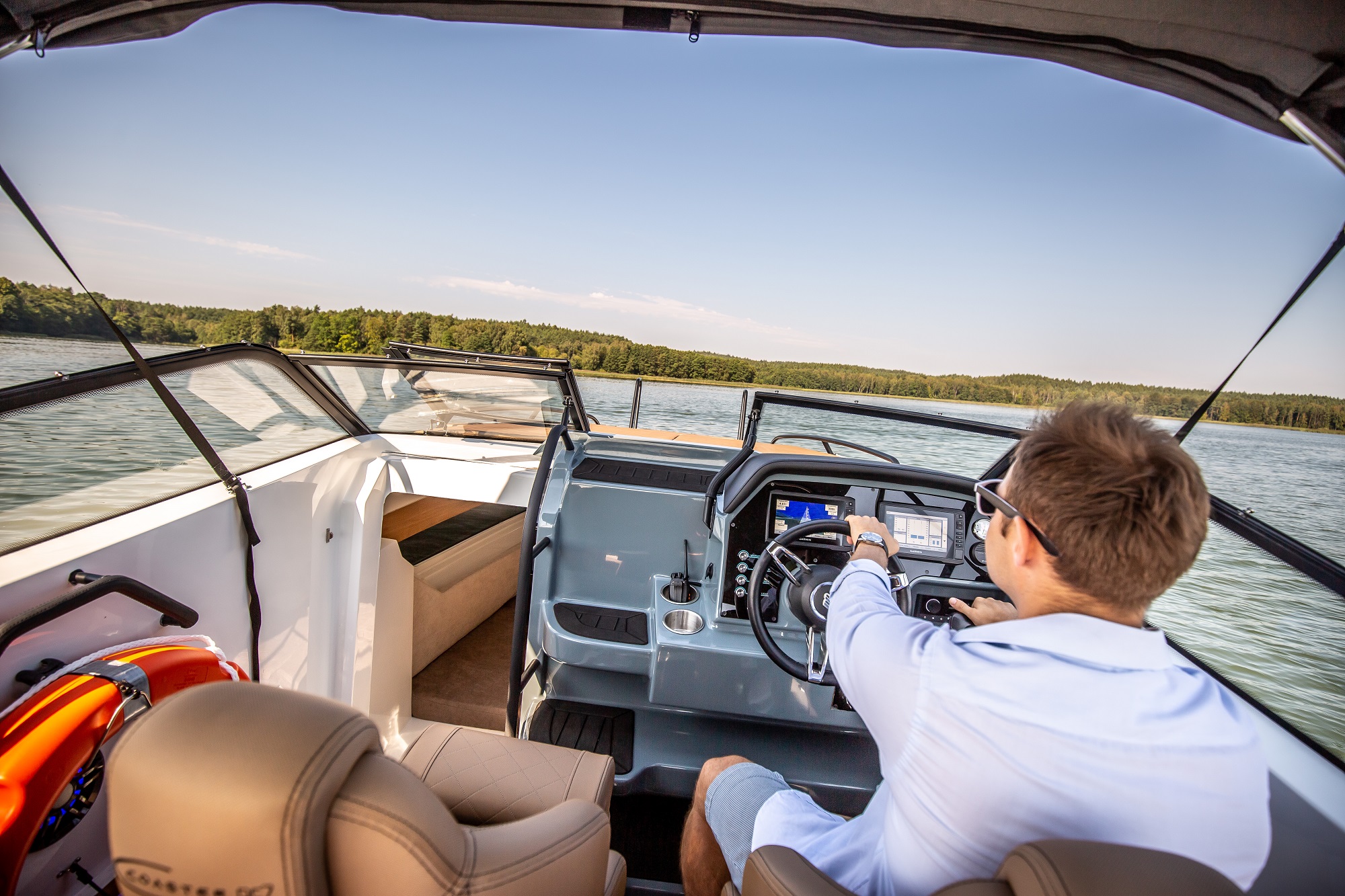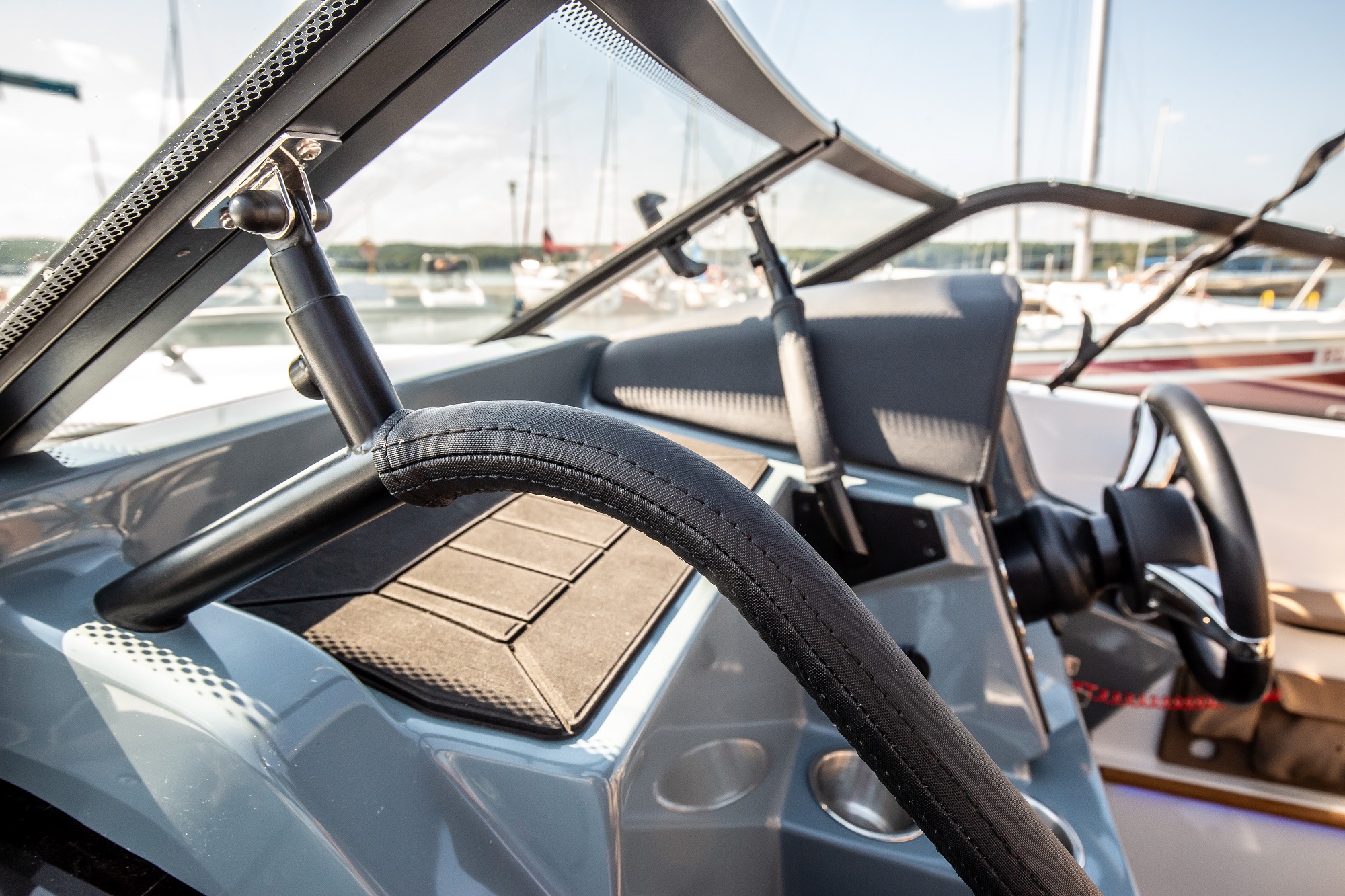 De asemenea, postul de comanda este amplasat la un nivel mai ridicat. Acest lucru protejeaza pasagerii de vant si stropii de apa. Poate fi echipata cu un cort cu functie bimini, care protejeaza pasagerii in diverse conditii meteorologice. In special, acest cort ofera protectie de ploaie si soare. Spatarul din zona pupa poate fi reglat.