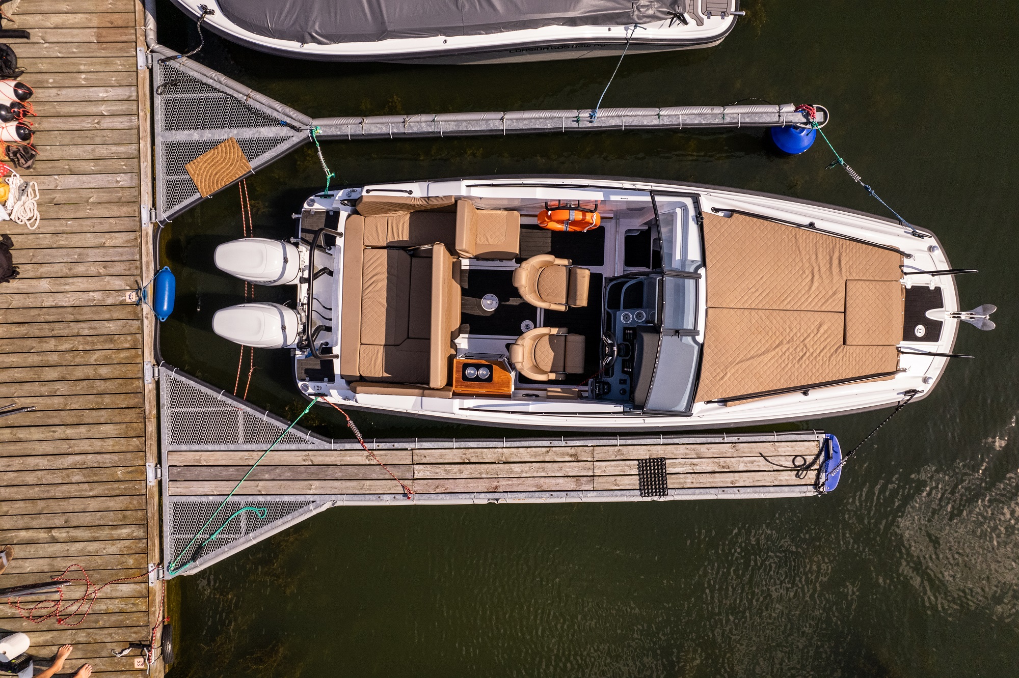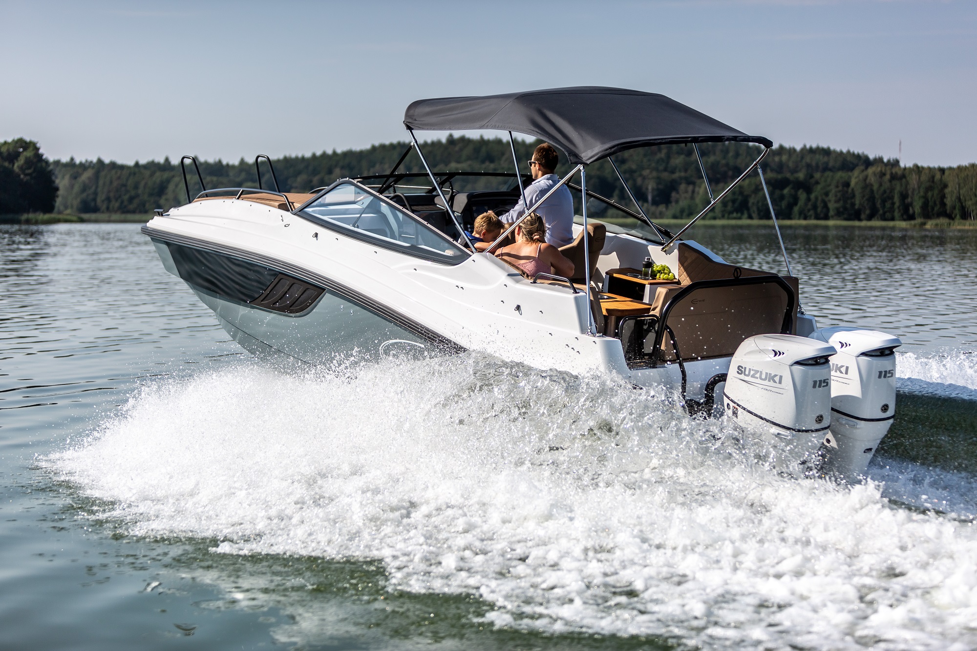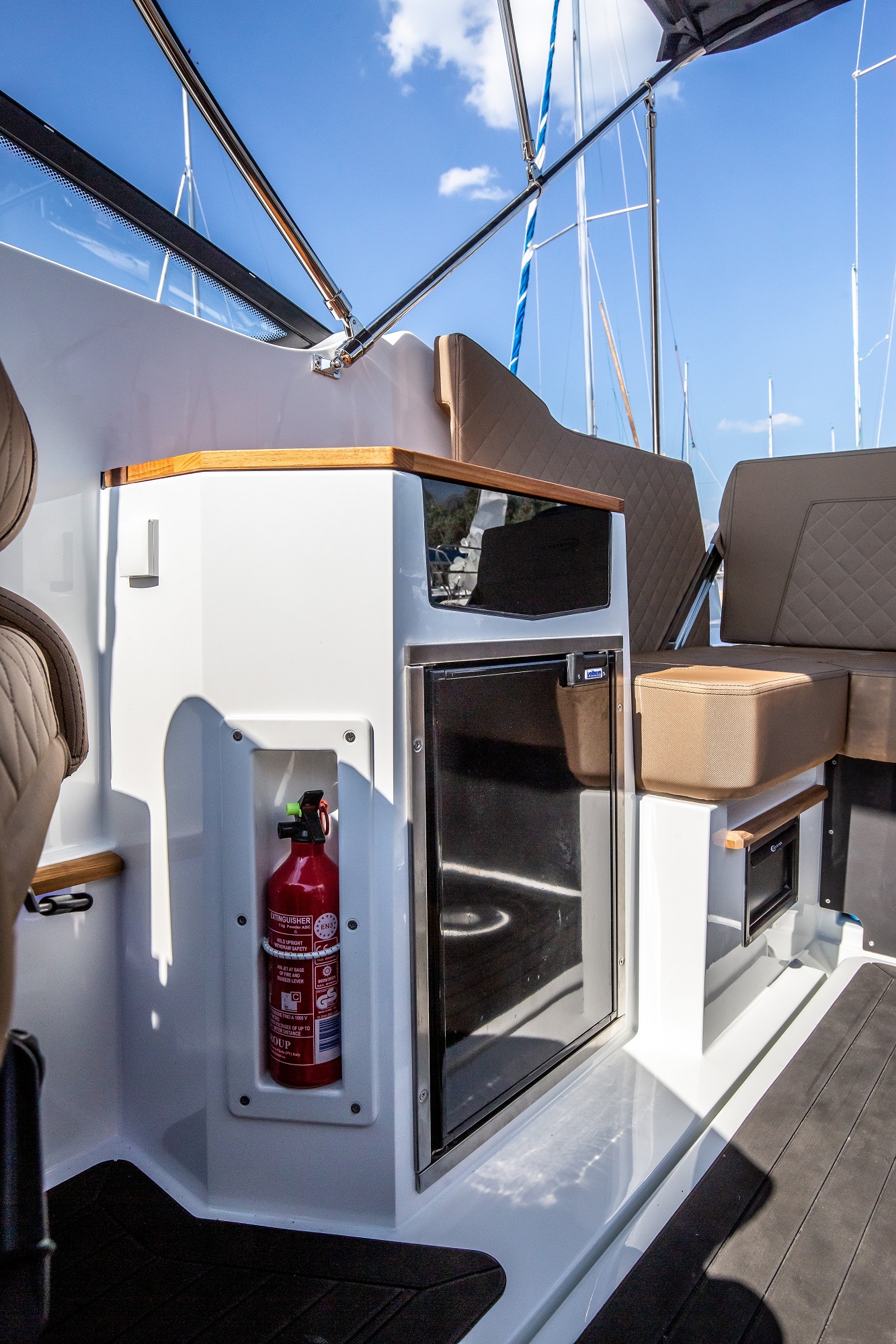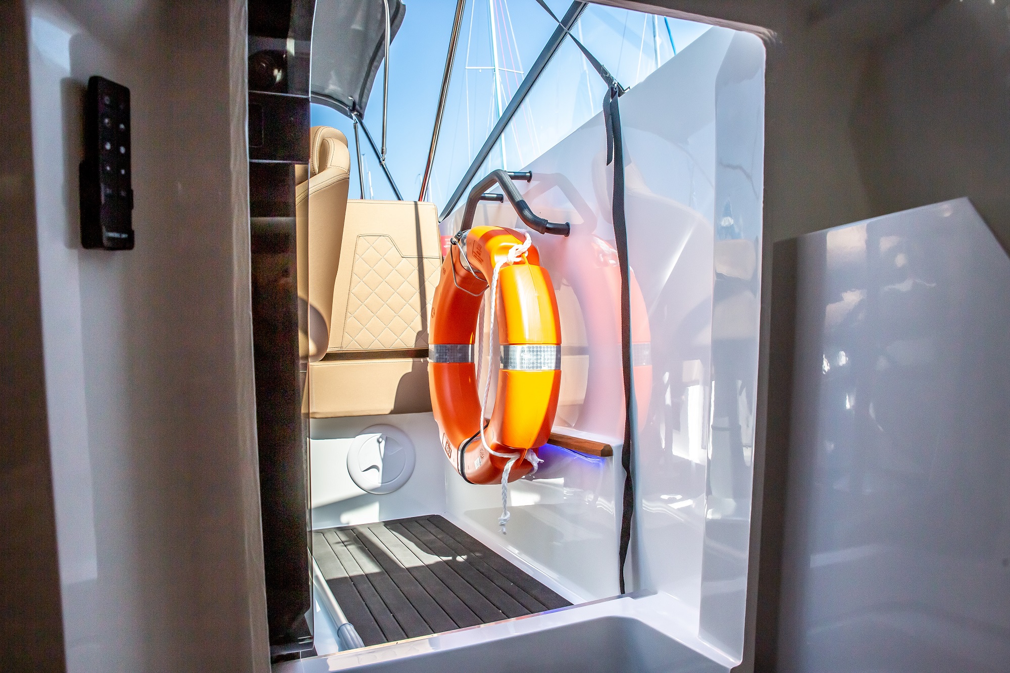 De asemenea, postul de comanda este amplasat la un nivel mai ridicat. Acest lucru protejeaza pasagerii de vant si stropii de apa. Poate fi echipata cu un cort cu functie bimini, care protejeaza pasagerii in diverse conditii meteorologice. In special, acest cort ofera protectie de ploaie si soare. Spatarul din zona pupa poate fi reglat.
