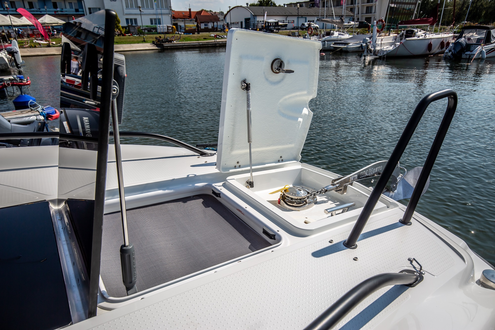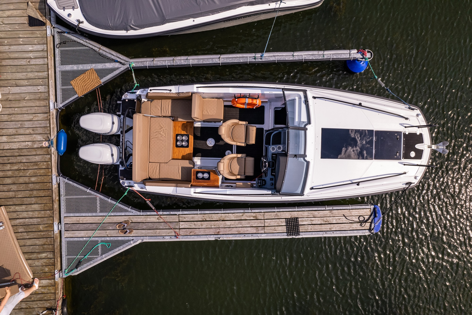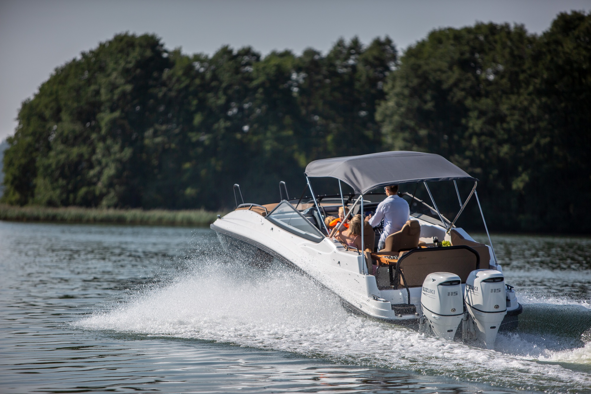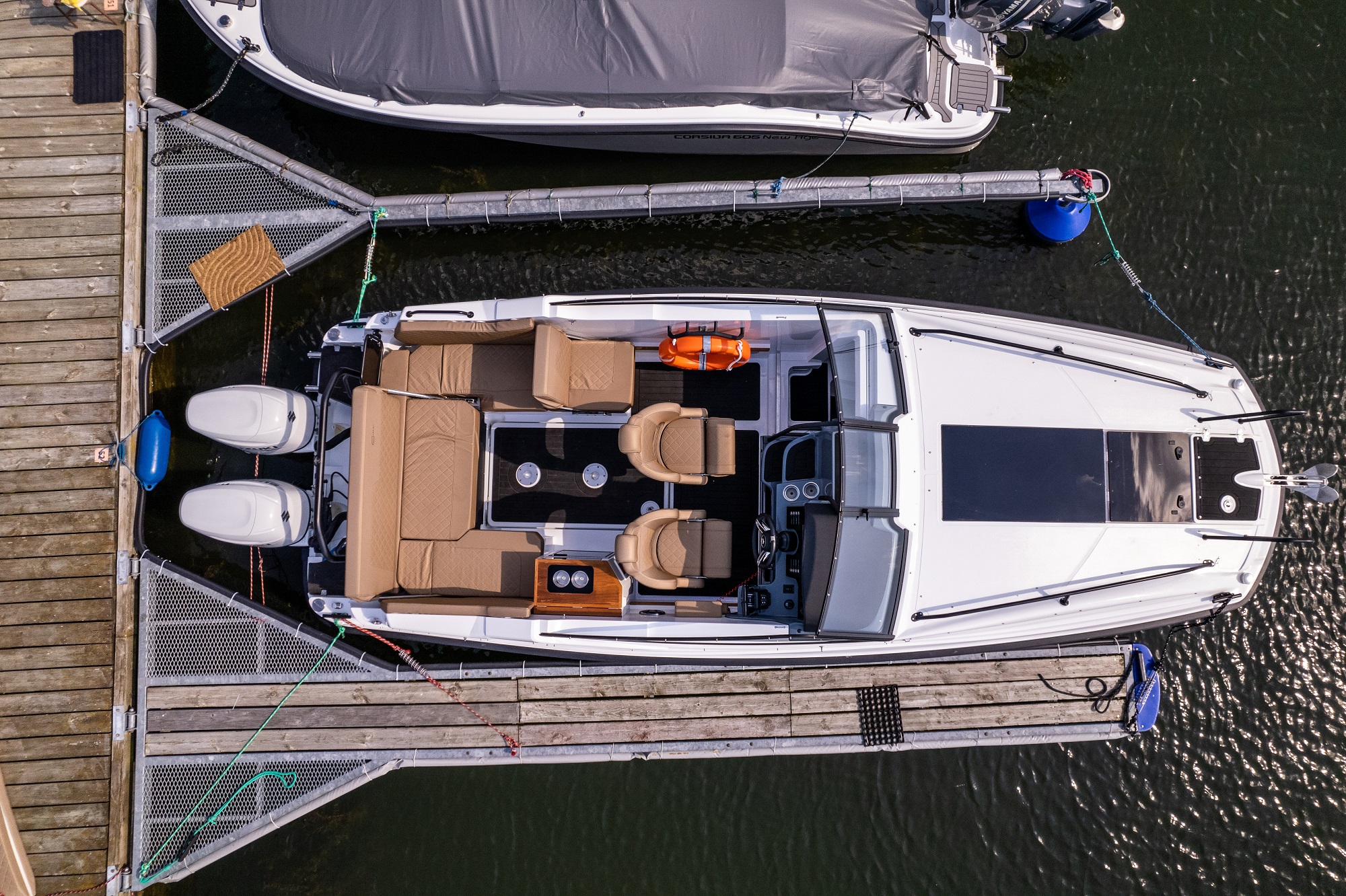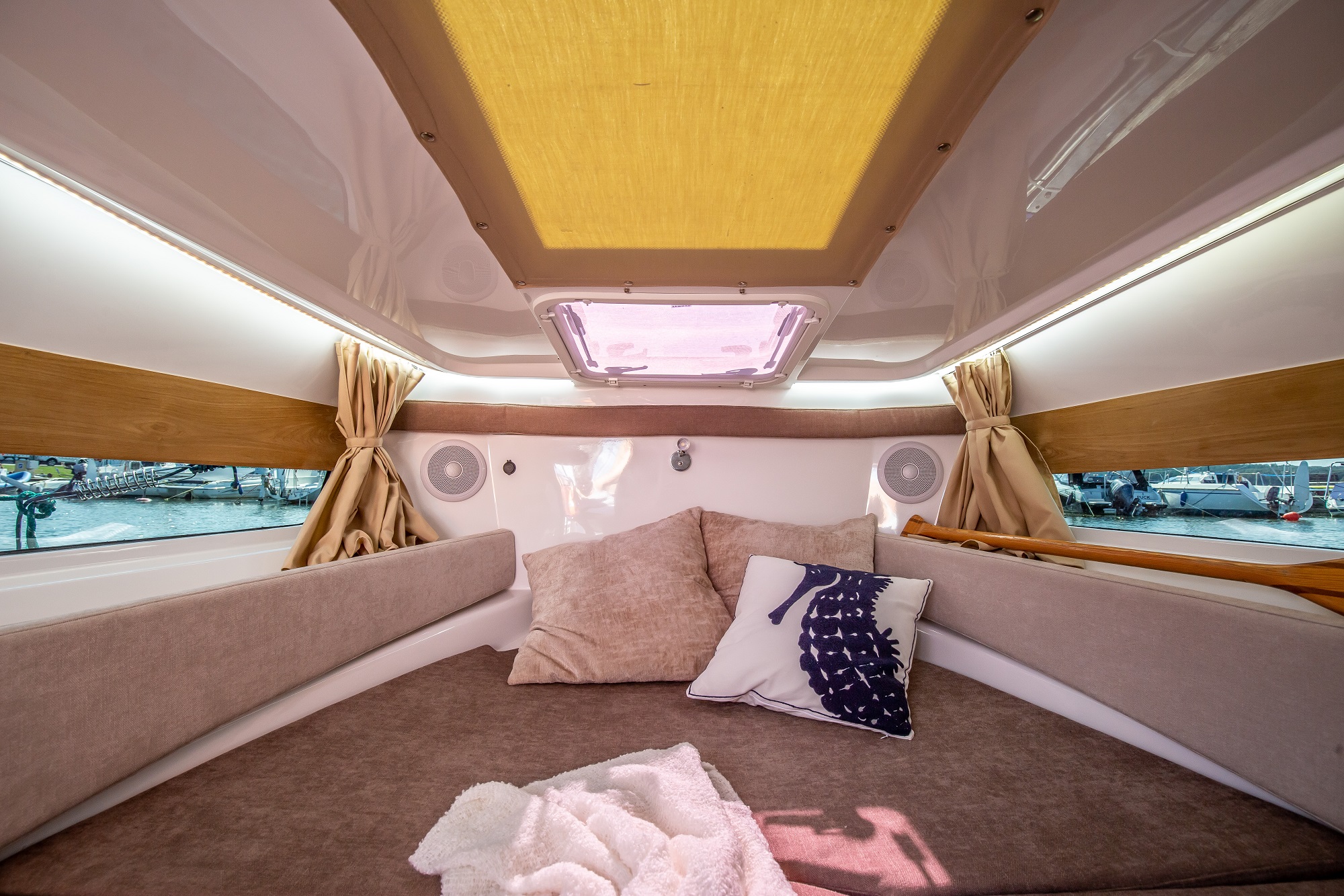 De asemenea, postul de comanda este amplasat la un nivel mai ridicat. Acest lucru protejeaza pasagerii de vant si stropii de apa. Poate fi echipata cu un cort cu functie bimini, care protejeaza pasagerii in diverse conditii meteorologice. In special, acest cort ofera protectie de ploaie si soare. Spatarul din zona pupa poate fi reglat.
