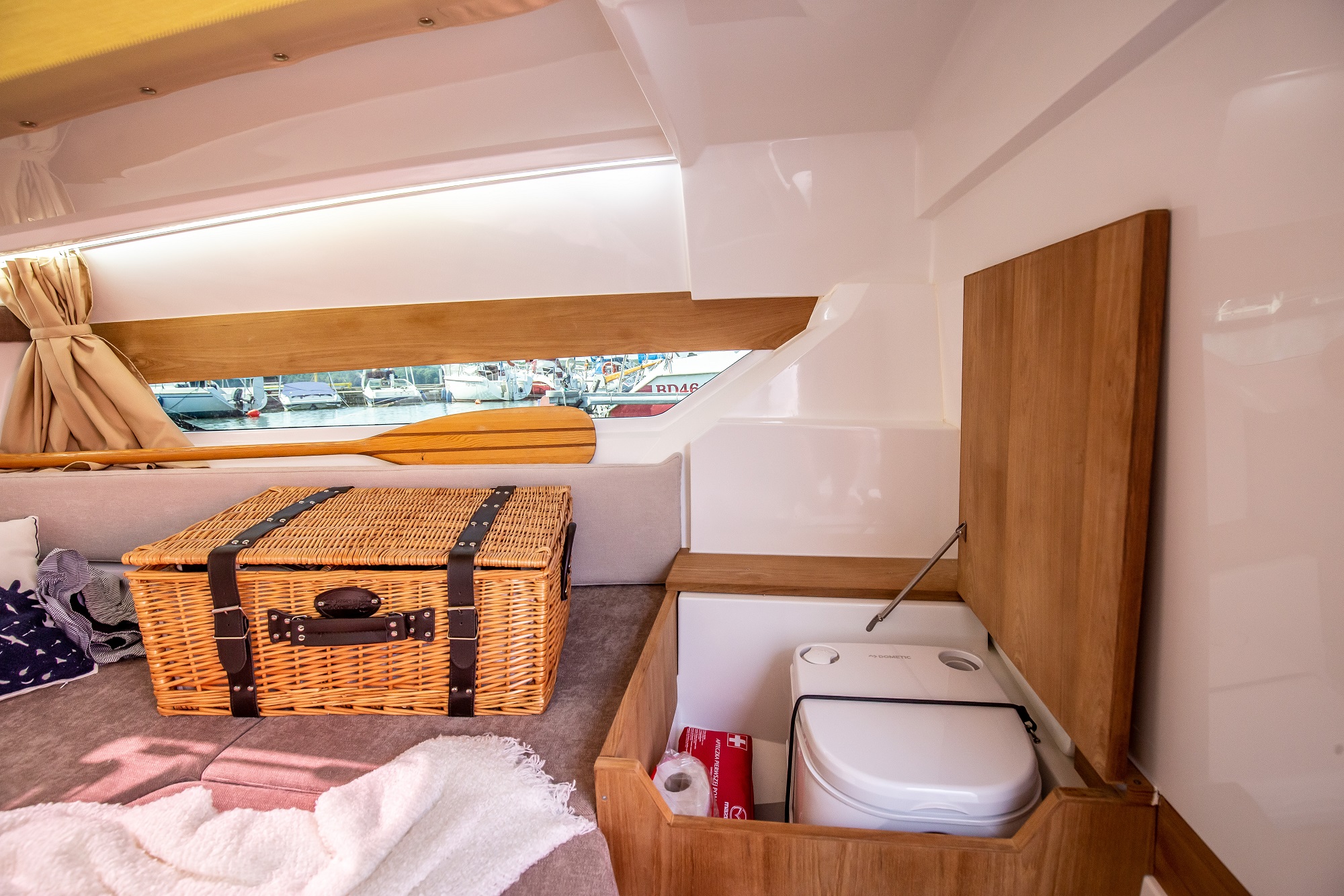Astfel, se ofera un spatiu generos ce garanteaza o vizibilitate neobstructionata asupra apei. In interiorul cabinei se regaseste un spatiu generos pentru toaleta si un loc de dormit. Acesta permite odihna confortabila a cel putin doua persoane. Coaster DC7 a fost conceput pentru a oferi cele mai bune conditii pe apa pentru dumneavoastra si familia dumneavoastra.